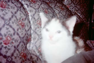 This is one of the two kittens, we call her mew.(her Curiosity brought her too close to the camera)