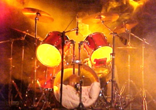 Maybe Satan, Check out the burning flame hue that hovers over his drums. Cool!
