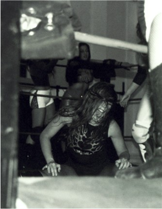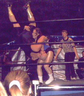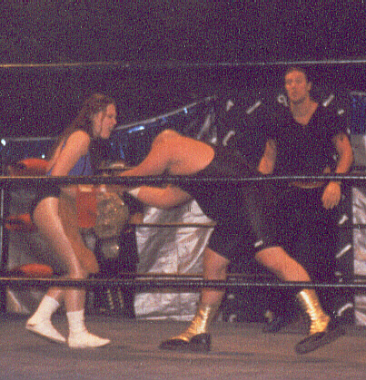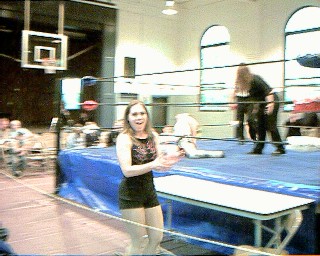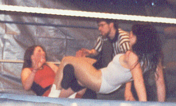 Action with Deanna Deville continues here on the floor! I had gone out of the ring to make sure the photographer had enought film to capture the action, and she attacked me! Next thing I knew the bell was ringing and the match was over, so I hope we meet in the ring again soon!