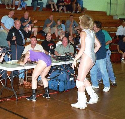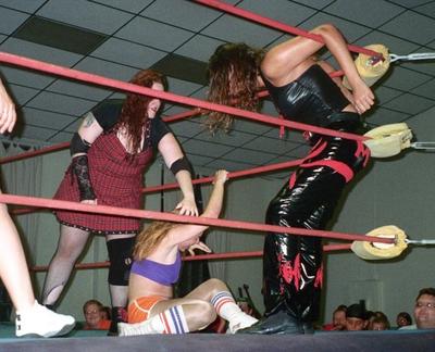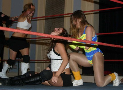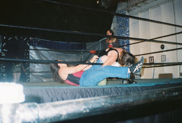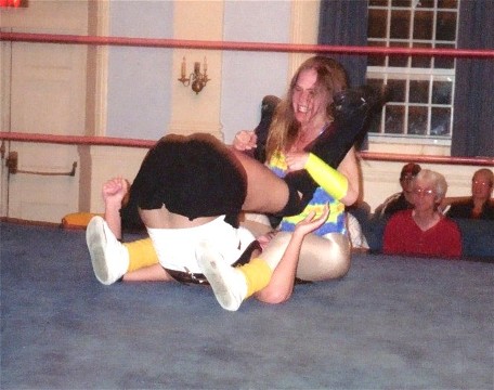 From singles action featuring Nikki Roxx and I to action from WWW's inagural show for the NECW ladies championship. Here I have Nikki Roxx locked into a body scissors, while I also have her caught in an abdominal stretch!