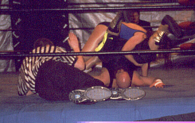 Last week you saw me suplexing Tanya Lee during our WWWmatch...and now this! Well, her manager Sean Gorman popped up on the ring apron, taking my attention away from Tanya for just a second, but that was all she needed to get the pin and retain the WWW title...for now!