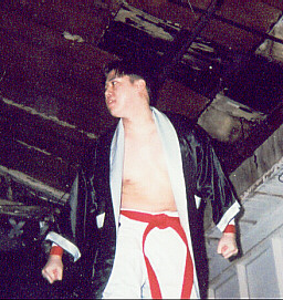 Last week I was telling you how the last UWA show didn't go as planned, and how I had a big surprise...well, the surprise was that this man, Tiger Fang, a Kowalski graduate and martial arts expert showed up to put a challenge out to Devestating Derek. Now, of course, Derek was already scheduled for a tag match that evening, so naturally it fell to me to accept the challenge...and accept I did! Action photos coming soon!