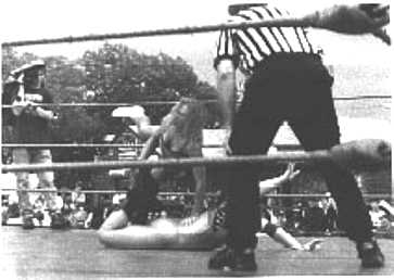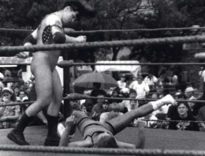 These were taken by my friend Kevin in New Bedford, MA on June 17. If you were there, you know that it was raining on and off, and started to rain fairly hard during the match...all just part of being a pro wrestler I guess. Unfortunately, the ring had a vinyl canvas, so wrestling on it wet was something like wrestling on a giant slip and slide. I did slip once, but luckily no one got injured.