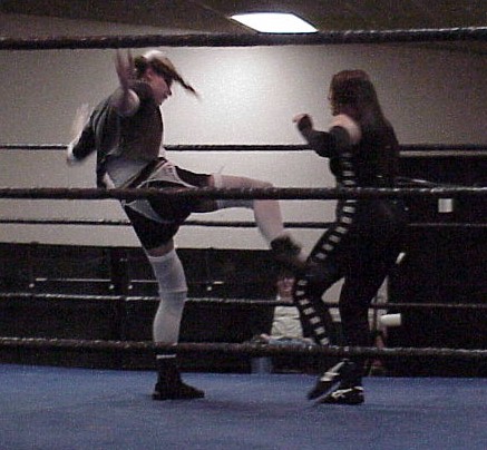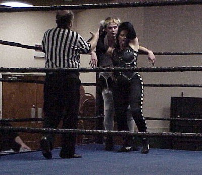 This was a grudge match, yes i had a match the week before with this um...girl? ssshe demanded a rematch when i beat her the first time. This time...she did better with a little help from Drucilla Davie.