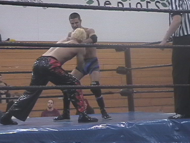 Jeff King flips out of a wrist lock from Armoni (UWE)