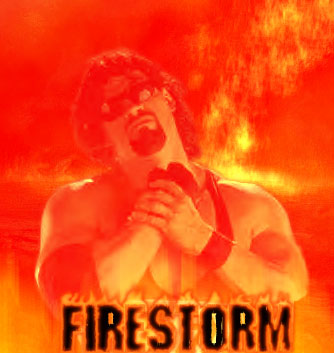 | Background: After years in a mental institution, Firestorm signed with the NFWA in August of 2000. Shortly after his arrival, Firestorm came out on the losing end of a rivalry with Siege (Killa) of the Elites. Anxious for revenge, Firestorm turned to Prez Panther. Firestorm was appointing Commissioner after aiding Panther in driving Mick Foley out of the NFWA, and he used his new powers to make Killa's life a living hell. For months, Firestorm stacked the deck against Killa, doing everything in his power to screw him over. It was when Firestorm "defeated" Killa for the World Title in October 2000 that Panther had seen enough. Panther immediately stripped Firestorm of the title and a heated rivalry developed between the two, which culminated at Overkill 2000 when Firestorm, aided by Panther's best friend Sniper, defeated Panther for ownership of the NFWA. Over the next few months, Firestorm and his Legion of Destruction battled the Panther-affiliated Generation X-Treme and the Sniper-led 9th Street Posse for supreme control of the fed; a battle which saw Firestorm nearly killed after being blown up (by Panther) inside an abandoned building at Apocalypse Now 2000. The war culminated at SlamFest, where Firestorm, Panther and Sniper conspired to re-form the imfamous Dynasty. This itself was a ploy by Panther and Sniper, who weeks later poisoned Firestorm, causing him to have a heart attack, and subsequently lose power in the NFWA. Seeking revenge, Firestorm signed control of the GNL expansion league over to Panther's arch nemesis "J-Dogg" Johnny Gunn. As an NFWA and GNL war began to heat up, Firestorm briefly stepped away from the spotlight, returning in January of 2002 with an iron-clad contract stating that he was still the Commish of the NFWA. At Game Time 2002, he aligned himself with Tina and the hated Angelfire faction after burning Panther with a blow torch and putting him out of action with temporary blindness. Finally, at SlamFest 2, Firestorm teamed with Tina to defeat Panther and Diamond, forcing the NFWA to close forever.