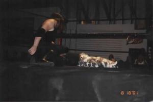 climbs the ropes.................... MOONSAULT...............