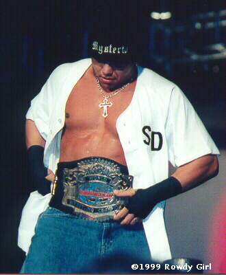 * The DX theme starts playing over the loudspeakers and AC walks down to the ring with his PWF Cruiserweight Title. *