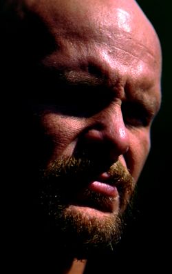 ANNOUNCER: Coming to the ring at this time, standing at 6 foot 5 and weighing in at 265 pounds, STEVE DRAKE!