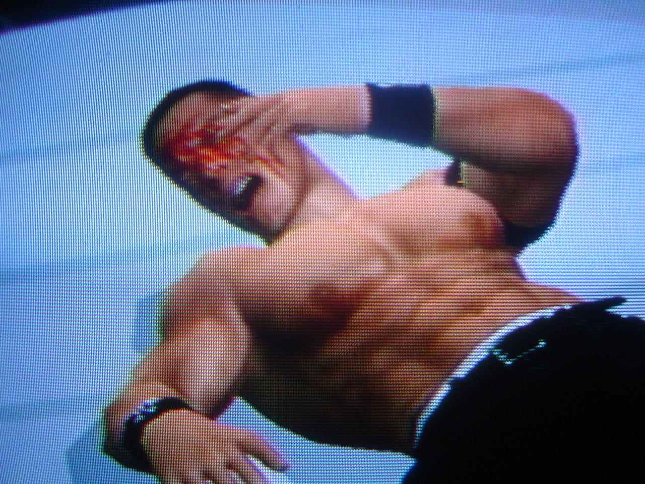 right when he got it up, Punk jumped on his shoulders and had a sleeper hold locked in deep! The fans were screaming as they could see Umaga fading. Umaga went to one knee and moments later, Punk had put him out. Referee Marty Elias began to count and