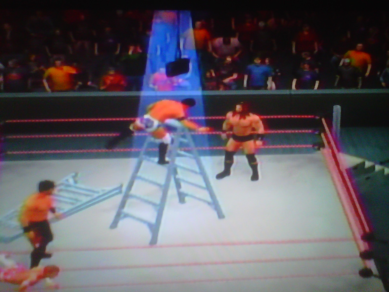 Cayden Cole: "That's easy, man... I'm just the best. The best now and the best for the future. Now excuse me, if you will, I have a match to win". Cash: "Of course. I would thank you for your time, but I think mine is actually a little more valuable. This has been the TWF's best and only roaming reporter, the million dollar mogul, the Primetime prodigy... your favorite announcer and mine, PJ Cash". Hudson: "Would you just sit down........ THE SHOT GOES TO THE BACKSTAGE AREA WHERE TRAVIS WAKEMAN AND TRISH ARE ENJOYING A MOMENT ALONE OVER BY CATERING. CAMERAS SHOW JORDAN ROCKWELL APPEAR IN THE BACKGROUND. TRISH INTERRUPTS WAKEMAN TO POINT IT OUT AFTER SHE SEES HIM. Wakeman: "What the hell are you doing here"? Jordan Rockwell: "I've been waiting for you to get away from the rest of your buddies so I can ask you a question... and I want an honest answer". Wakeman: "I won't make that promise". Rockwell: "Cena...... it's obvious it's The Empire's doing.... I just want to know, what did Corey do to earn that"? Wakeman: "Listen, Sherlock Holmes, if The Empire wanted to take out Cena.... we would.... and we'd gladly say we did. It wasn't us...... Rockwell: "It's either you..... or Corey is just that afraid to defend his title". ROCKWELL WALKS AWAY, NOT SATISFIED WITH WAKEMAN's ANSWER AT ALL. THE SHOT GOES BACK TO THE RING WHERE TYLER REKS, JUSTIN GABRIEL AND VANCE ARCHER ARE ALREADY IN THE RING. SURPRISINGLY, THEY CAME TO THE RING TOGETHER. "ADRENALINE" BY GAVIN ROSSDALE HITS AND CAYDEN COLE COMES OUT NEXT. HE IS MET WITH MOSTLY CHEERS. Hudson: "As you said in your interview, there is no shortage of confidence with this guy but this is just such a strange match. I mean, three of these guys came out here together". Cash: "It's about something different here, Hudson..... these guys are out here to show what they can do..... this is a coming out party for these guys". Hudson: "And a huge coming out party it is..... a TLC match"! THE EMPIRE THEME COMES ON AND ALBA RIOS COMES OUT AND IS LOUDLY BOOED. Alba Rios: "Okay guys.... it's TLC. As you can see, there is a briefcase hanging above that ring and inside is an open contract for a title match..... whoever wins will become the challenger for a title determined by us..... The Empire! Good luck"! Cash: "A title match to the winner? Now there's extra incentive"! Hudson: "It sounds like The Empire will decide which title the winner will challenge for, but that's a huge bonus"! TLC Match Tyler Reks vs. Justin Gabriel vs. Vance Archer vs. Cayden Cole As the bell sounded, the 4 men circled each other and seemed to be on some level of understanding as they all nodded at one another. Reks and Archer then began trading shots in the center of the ring and Cole went straight to the outside, grabbing a steel chair. He came into the ring with it and wedged it in the corner but Gabriel came from behind with a shot to the back. He then peppered Cole with some kicks but Cole pushed him into the waiting arms of Archer who delivered a full nelson slam. Archer then charged Cole with a clothesline but Cole ducked only to be powerslam by Reks. Right when Reks got up, Archer kicked him in the abdomen and threw him head first into the chair that was stuffed between the ring ropes. Archer went and pulled Gabriel up and tried to throw him out of the ring but Gabriel landed on the apron. He then drove a shoulder into Archer's gut before clipping him with a soccer style kick right in the face! Archer fell to the mat, his nose busted open and gushing blood. Gabriel grabbed a ladder and put it in the ring but before he could get it all the way in, Cole slid on the mat with a dropkick that drove one of the legs of the ladder into Gabriel's chest. Cole pulled the ladder into the ring and set it up. He began to climb it but 3 rungs up, Reks came from behind and got Cole up in the electric chair, falling to the mat with him. Even with a bloodied nose, Archer had set up a table outside the ring and he got back in, smashing Reks with a clothesline from behind. He then tried to make his way up the ladder himself, but Cole and Gabriel each grabbed a side of it and pushed the ladder over. Archer fell off and crotched himself on the top rope. Gabriel then pulled out the chair that was placed earlier but right when he turned around, Cole delivered a jumping spin kick that drove the chair right into Gabriel's face! A chant of "Holy Shit" started up as Cole, the only man standing in the ring, picked the ladder back up and started to go up again. He got very near the top when Reks came from the other side and pushed it over. Cole landed on his feet when he hit the mat and Reks pounded him with a clothesline. Reks then went outside the ring where Archer was and he placed him on the table. But Gabriel came around from the other side and threw a steel chair right in Reks' face! He then looked at Archer lying on the table and seemed to get an idea. He went into the ring and ran the ropes, gathering a lot of speed. He then leaped over the top rope with a shooting star press and landed it right on Archer, smashing through the table! "This shit rocks" resonated through the arena as all 4 men were down. Gabriel got up and into the ring where he and Cole met, battling it out. Both men missed with roundhouse kicks and then traded punches as Archer and Reks both got into the ring. Archer nailed Cole from behind as Reks took out Gabriel. Reks and Archer then took to the ladder, each trying to go up it. But Cole and Gabriel did what they could to prevent it. Gabriel pulled Reks down by his arm and on the way down, kicked him in the head. On the other side of the ladder, Cole actually used Archer, climbing on and then over him to get ahead of him on the ladder. But Archer turned around and had Cole set up for a powerbomb, only to have Cole counter with a hurracanrana throw, sending Archer out of the ring. But before Cole could recover, Gabriel was all the way up the ladder and he grabbed the briefcase, pulli
