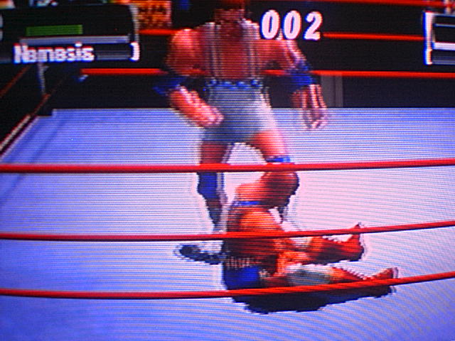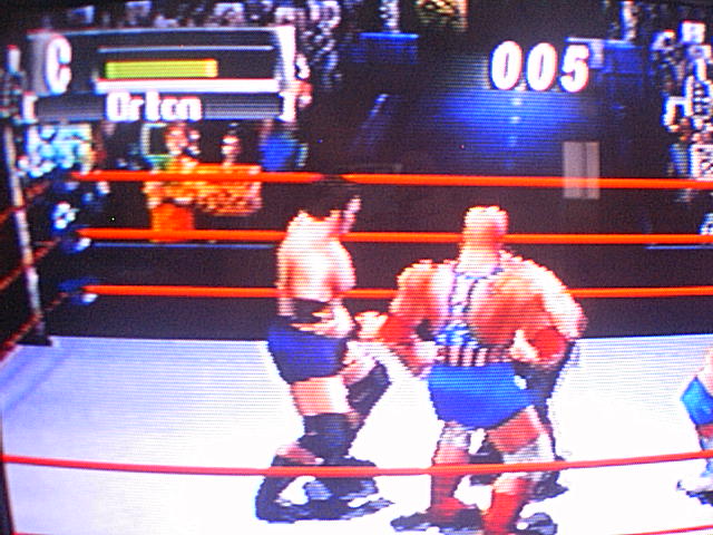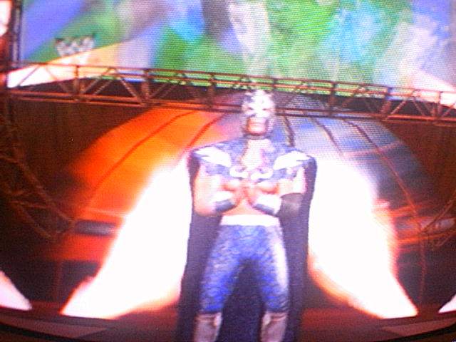 Flag Match Rob Storm w/ Jimmy Hart vs. Val Venis Referee Charles Robinson was assigned the opening bout for the Rumble and the hatred between Storm and Venis boiled over as soon as the bell rang. Val tackled him and wailed away with some hard right hands. Only a few found their target however and Storm was able to kick his way out of the predicament. They locked up in a collar and elbow tie and Storm used a go behind but Val clipped him with a back elbow followed by 2 more right hands. Storm was able to reverse an irish whip though and he caught Val with a calf kick. Storm then went after the lower back of Val, first stomping at it and then dropping him across his knee with a backbreaker. Storm then locked in a half crab but Val did a push up and powered his way out of it. Storm charged him but Val countered with a nice spinebuster. Val then went to the corner and climbed up, looking to grab the flag. But before he could get his grasp on it, Storm came from behind and swiped his feet out. He then pulled Val down in a tree of woe position and drilled him with a sliding dropkick. Val was given a bloody mouth from the shot but upon being pulled up, he flung Storm's arms up and hit him with a series of right hands before running him to the ropes with a kneelift. He then used his russian leg sweep before again going to the turnbuckle. He climbed up and had his fingertips on the pole of the flag but Storm showed some great athleticism by dropkicking Val off the turnbuckle and all the way to the floor. Storm then pulled Robinson away as Hart got in some kicks to the gut. Val was able to pull himself back up on the apron and Storm tried to pull him into the ring. But Val dropped down and dropped his head over the top rope. He then clocked Jimmy Hart and got into the ring. Val was feeling it as he pummeled Storm with right hand after right hand but the always thinking Hart yelled "hey Val" in his megaphone, causing Val to turn which allowed Storm to take him out with a chop block. Back to the lower back went Storm but he was still yet to make an attempt to get the flag. Storm then whipped Venis into the corner and charged in but ran right into a back elbow from Val. Val then exploded out with a running kick but blasted referee Robinson when Storm moved. As Val tried to get Robinson up, Storm got the megaphone and cold cocked Venis. He then locked in a half crab again as Jimmy Hart stunningly climbed up the turnbuckle and got the flag. He tossed it to Storm who grabbed it and was holding it as Robinson came to and he called for the bell. Match Time: 9:17 Lawler: "Ah look at that J.R.! What a representation of Canada"! J.R.: "If Canada wants to be represented by a couple of damn cheaters then I'm even more proud to be an American! This was nothing more than a couple of guys shopping at the bargain basement to get a win! And what about Jimmy Hart going and getting the flag? Does he dress Storm too"?! STORM AND HART WALKED UP THE RAMP. STORM WAVED THE FLAG AS HART YELLED "WE WON" THROUGH HIS MEGAPHONE AND THE CROWD COLLECTIVELY BOOED. Lawler: "He got him a win J.R. and I'm sure that's what Storm hired him to do is win"! J.R.: "Well I just feel so sorry for Val Venis and I know most people in Canada feel the same damn way"! BACKSTAGE.... DRAWING ROOM..... TAYLOR MADE IS SHOWN WITH DESIRE AND TERRI IN THE DRAWING ROOM. HE REACHES INTO THE SPINNING TUB OF BALLS AND PULLS OUT HIS NUMBER FOR THE ROYAL RUMBLE. HE LOOKS AT IT AND GIVES A SMALL SIGN. Desire: "Wow, with a number like that, you're gonna have to go all night". Terri: "Oh believe me, he can". Taylor Made: "Come on girls, I have to get ready". CAMERAS SWITCH TO ANOTHER PART OF THE BACKSTAGE AREA WHERE SEAN O'HAIRE IS STANDING WITH A NEW LOOK ESSA RIOS. HE IS SPORTING A TRENCH COAT AND DARK SHADES AND HAS BLACK HAIR WITH RED TIPS. Sean O'haire: "Look Essa, your appearance is better now and you've followed all my advice. So tonight, if you wanna become Lightheavyweight champ, cheat to win". Essa Rios: (in better English than usual) "I will senor O'haire, I will". BACK AT RINGSIDE, ESSA RIOS' MUSIC HITS AND HE COMES OUT TO SOME HEAT. Cole: "Cheat to win? What is wrong in the head of Sean O'haire"? Ventura: "Nothing. He's guided this talented superstar Essa Rios into this position and I agree with him, cheat to win"! THE ULTIMO DRAGON's MUSIC HITS AND HE COMES OUT WEARING THE LIGHTHEAVYWEIGHT TITLE TO HIS IMPRESSIVE, FIRE FILLED ENTRANCE. Cole: "Well I just think that, title match or not, Essa Rios is going down the wrong path and tonight, he's gonna meet one of the most talented wrestlers in the world"! Ventura: "Well I'm not gonna take anything away from the Ultimo Dragon Cole, but I am gonna disagree with your idea that he's going down the wrong path. Just because you've been a goody damn two shoes all your life, doesn't mean that makes for a model superstar. Sean O'haire is a positive influenece on Rios"! Cole: "Yeah whatever, maybe they'll get invited to the White House. But on a serious note, fans should be treated to one heck of a title match here"! TWF Lightheavyweight Title Match Challenger.... Essa Rios vs. The Ultimo Dragon The bell sounded and right away, Rios seemed the quicker of the 2, bating the Dragon into 2 hip tosses and a wheel kick. He then whipped him to the ropes and showed a little bit of a power side with a tilt-a-whirl backbreaker. He went into a cover for a quick 2 count. Rios then whipped him to the corner and scored with a handspring back elbow before a vicious piledriver that stuffed the champion into the mat. Rios made another cover but again, Ultimo kicked out at 2. But Ultimo was staggered and Rios capatalized. After a powerslam, Rios went to the top rope and came off with a big guillotine legdrop. Even the crowd thought it was over as referee Jim Korderas made the count but before he could get to 3, Ultimo rolled his left shoulder up. A focused Rios stayed on the champion but after reversing an irish whip to the corn