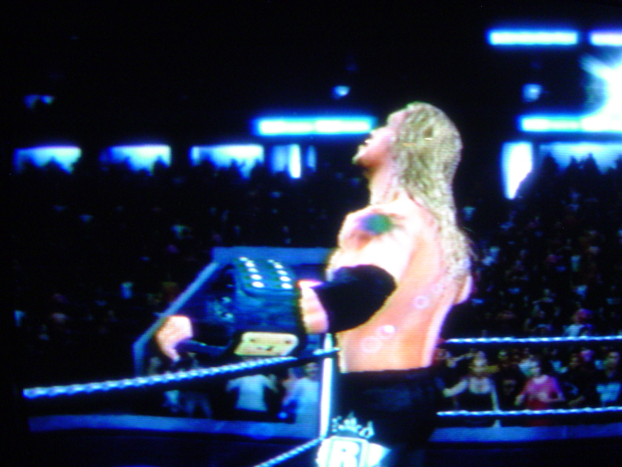 "BOOM.......BOOM......BOOM"! THE SHOT OPENS INSIDE THE SPORTS ARENA IN SAN DIEGO AND THERE ARE FANS LINED UP IN THE STANDS, SCREAMING, YELLING AND DOING WHATEVER THEY CAN TO GET ON CAMERA. SEVERAL "619" SIGNS ARE SPOTTED AS IS ONE SAYING "ORTON TRULY IS THE BEST, BAR NONE". MICHAEL COLE AND THE HONKY TONK MAN ARE SHOWN SEATED AT THE PRIMETIME BROADCAST POSITION, TRYING HARD TO TALK OVER THE NOISE. Michael Cole: "There is a big fight feel here in San Diego and over fifteen thousand TWF fans have come out to join us"! Honky Tonk Man: "And let's not forget all the millions of people watching around the world, Cole"! Cole: "Tonight, the Universal title will be defended in a huge triple threat match and let's not downplay the thirty man Royal Rumble! Someone's gonna get a ticket punched to WrestleMania! Let's send it over to our broadcast colleagues from Rampage.... J.R. and the King"! JIM ROSS AND JERRY LAWLER ARE SHOWN SEATED NEXT TO COLE AND HONKY TONK MAN AND JUST THEN, "BLACK" BY SEVENDUST COMES ON AND SEBASTIAN CAIN COMES OUT TO A PRETTY STRONG RESPONSE. Jim Ross: "Well you mentioned the Universal title match, the World title will also be defended tonight but first, we've got a title match right now"! Jerry Lawler: "That's right, it's the King of Cable title and here comes the challenger"! J.R.: "Well ya gotta feel for this guy. When Sebastian Cain surfaced here in the TWF, he was a young, impressionable rookie and unfortunately for him, he hooked up with Sean O'Haire who used him and then aired some very private and personal family information". "COME ON" BY WATERPROOF BLONDE PLAYS AND BOOS FILL THE SPORTS ARENA FOR THE FIRST TIME AS SEAN O'HAIRE MAKES HIS WAY TO THE RING WEARING A LONG BLACK TRENCH COAT AND THE KING OF CABLE TITLE AROUND HIS WAIST. Lawler: "Well let's not forget that no one forced Cain to socialize with O'Haire.... that was all his choice". J.R.: "And let's not forget that while he may be a pretty lousy human being, Sean O'Haire is as talented as anyone on the TWF roster". TWF King of Cable Title Match Challenger: Sebastian Cain vs. Sean O'Haire As the bell sounded, Cain stood patiently across the ring, waiting for O'Haire to hand over the title belt. But after removing his trench coat, O'Haire threw it in the face of the challenger, allowing him to move in with some quick right hands to the head before delivering a heavy kneelift. O'Haire hit a double underhook suplex and was in total control. After landing a big elbow drop, O'Haire pulled Cain up by his hair, badmouthing him as he did. But Cain began to fight back, landing 2 quick punches before pushing O'Haire away. But as he began to get up, O'Haire ran in and kicked Cain right square in the chest. He then got him up and whipped him to the ropes but he missed with a clothesline and Cain came off the other side with a back elbow. After a quick legdrop, Cain went for the cover but O'Haire was up at 1. Cain got him up and shot him to the corner, slowly moving in before lifting him up and dropping him on the top ring rope for a slingshot suplex. Cain made another cover, and got a 2 count this time. After scooping the champion up and slamming him to the mat, Cain went to the top rope, waiting for O'Haire to get up. When he did, he flew off with a clothesline, but O'Haire instead caught him coming with a spin kick right in the mouth. Cain crumpled to the mat and O'Haire topped him, hooking the inside leg to get 1...........2..........., but Cain was up. This sent a charge into the crowd, who began to rally behind the challenger. O'Haire kept the pressure on and after an irish whip, he dropped to one knee and caught him with a backhand to the abdomen. O'Haire then tried to deliver a neckbreaker drop but Cain got in an elbow to the kidney area before spinning O'Haire around. Cain went for a clothesline but missed and O'Haire was able to get him up on his shoulders for the "Widowmaker". Somehow, Cain slipped free and landed on his feet. O'Haire tried to come back with a spinning roundhouse kick, but Cain was alert enough to avoid that as well before grabbing him in some sort of 3 quarter nelson and driving him into the mat with a suplex. The fans rose to their feet as Cain rolled atop O'Haire and hooked a leg as referee Scott Martin issued the 1...............2...............3! Match Time: 9:26 J.R.: "He did it! We have a new champion"! Lawler: "Can you believe that move?! I've never seen anything like that before"! MARTIN HANDED CAIN THE BELT AND HE RAISED IT UP IN HIS RIGHT HAND AS "BLACK" AGAIN PLAYED. J.R.: "He calls that the Mark of Cain and what a moment this has to be for Cain! Not only is he the new King of Cable, but he was able to gain a little revenge on O'Haire who drug his family name through the dirt"! CAIN LEFT THE RING, LOOKING BACK AT O'HAIRE WHO LOOKED UP FROM THE MAT, INTENSELY MAD. Lawler: "I have to say I'm shocked! Sebastian Cain was in there with one of the most successful champions in TWF history and he's come out victorious"! J.R.: "What a huge step in the maturation process for this young man! Now, let's switch gears a little bit here and send it over to the room where all thirty superstars in tonight's Royal Rumble will be selecting their numbers"! ROYAL RUMBLE DRAWING ROOM CAMERAS ARE INSIDE THE DRAWING ROOM WHERE SHANE McMAHON HAS THE ASSISTANCE OF BOTH KELLY AND TALIA, WHO ARE DRESSED IN VERY SKIMPY SHORT, BLACK DRESSES. Shane McMahon: "You girls ready? Here comes our first superstar"! KELLY BEGINS TO SPIN A LARGE GOLD TUMBLER, CONTAINING THIRTY NUMBERS INSIDE PLASTIC BUBBLES WHEN MR. KENNEDY WALKS IN. Shane McMahon: "Look at this..... it's last year's winner! Get in there, Kennedy, you got the first pick". KENNEDY STEPS UP AND STICKS HIS HAND INSIDE THE TUMBLER, PULLING OUT A NUMBER. HE OPENS IT AND TAKES A LOOK BEFORE WALKING OUT. Shane: "Good luck". THE SHOT GOES BACK TO RINGSIDE AND MICHAEL COLE AND THE HONKY TONK MAN ARE SHOWN AGAIN. Cole: "We will be keeping tabs on that drawing room as 