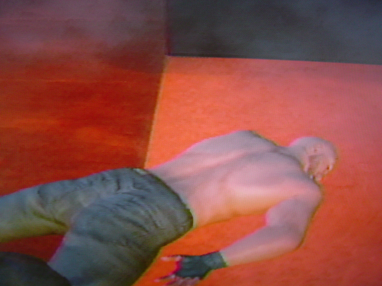 TWO VEHICLES ARE SHOWN ON OPPOSITE SIDES OF SOME SORT OF ARENA. THOUSANDS OF FANS ARE CHEERING AND SCREAMING AS EACH CAR, A RED ONE AND A BLUE ONE, REV THEIR ENGINES. ONE MAN SHOVES A HOG DOG INTO HIS MOUTH BEFORE YELLING SOMETHING THAT COULD NOT BE DECIPHERED. THE CARS THEN TAKE OFF, HEADED RIGHT AT EACH OTHER. Audio Voiceover: "Tonight...... three men will battle for superiority.......... IMAGES OF JOE COREY, EDGE AND JOHN CENA ARE SHOWN. BACK INSIDE THE ARENA, A BUZZER SOUNDS OFF PERIODICALLY AND A DOOR OPENS, ALLOWING ANOTHER VEHICLE TO ENTER THE FRAY IN WHAT SEEMS LIKE A DANGEROUS DEMOLITION DERBY. Voiceover: "Tonight, another man looks to further his claim of being at the top of his particular line of work...... A SHOT OF RANDY ORTON HOLDING UP THE TWF WORLD TITLE IS SHOWN FOLLOWED BY AN IMAGE OF ROB VAN DAM DOING HIS TRADEMARK POSE. ......while another ventures to prove against that theory". NOW, CARS ARE RACING AT EACH OTHER AT A FURIOUS PACE, SLAMMING INTO ONE ANOTHER WITH NO RELENT. Voiceover: "And tonight...... thirty men are in pursuit of one common goal. FINALLY, A YELLOW CAR HAMMERS THE BLUE VEHICLE THAT STARTED THE VIDEO, KNOCKING IT UP AGAINST A WALL IN FRONT OF SEVERAL YELLING AND SCREAMING PEOPLE. THE CAR IS DENTED UP PRETTY BADLY AND THE HOOD IS BILLOWING SMOKE. THE YELLOW CAR THEN DRIVES TO A SPOTLIGHT IN THE CENTER OF THE ARENA AND PARKS. THAT SPOTLIGHT CONTAINS THE WRESTLEMANIA 10 LOGO. THE ENTIRE CROWD IS ON IT's FEET, CHEERING AND APPLAUDING. Voiceover: "And now...... TWF Entertainment presents..................