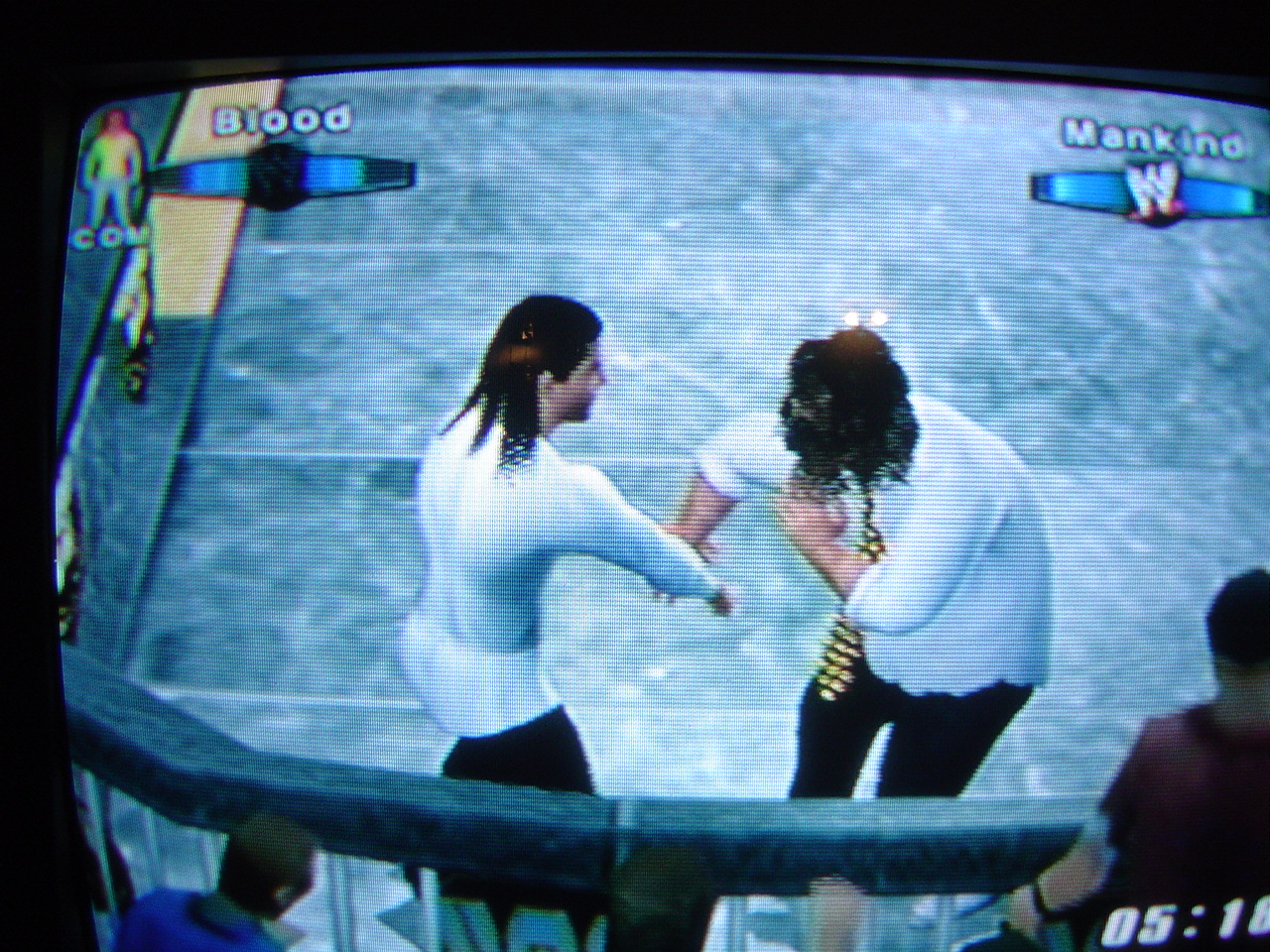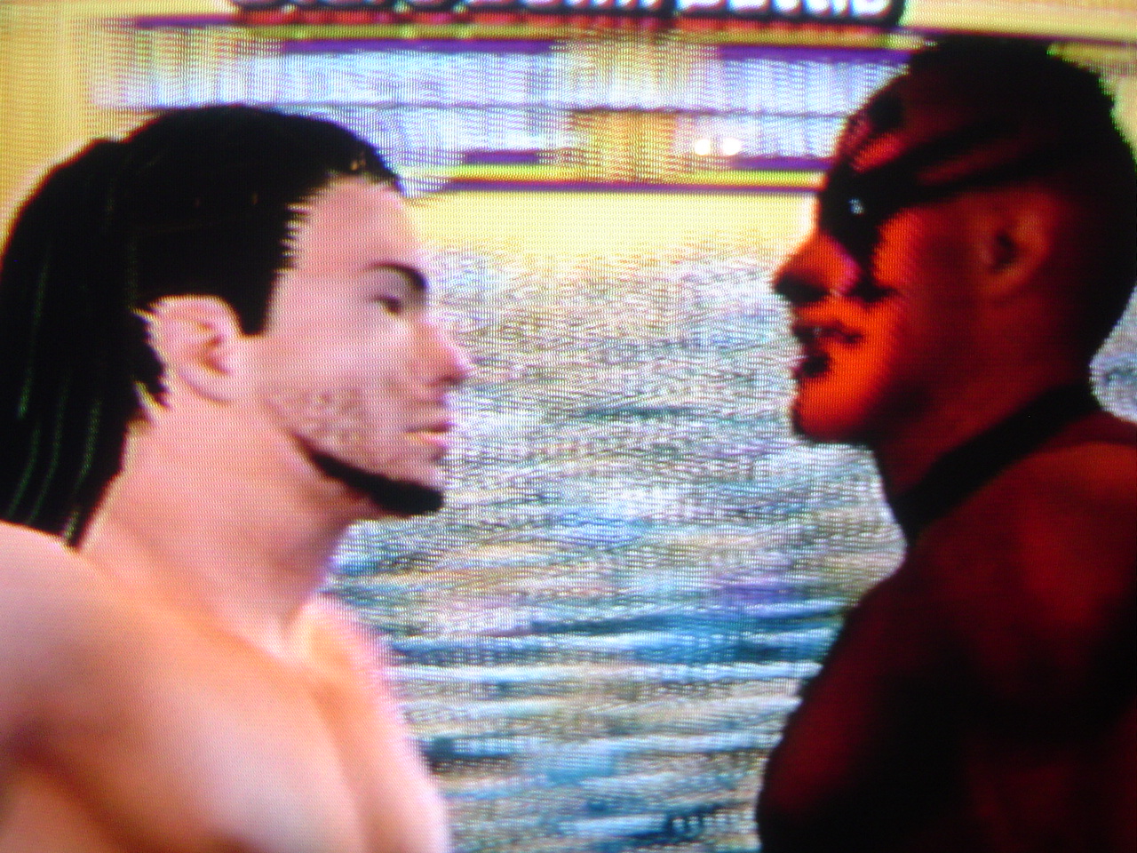 Two stills of Money Mike and “The Show” slide across the screen, and when they meet, they fade into the logo for WrestleMania 7. BACK TO LIVE ACTION, THE HORSEMEN THEME HITS AND MONEY MIKE STEPS OUT TO A REACTION THAT IS MOSTLY BOOS BUT THERE ARE SOME CHEERS HEARD. HE LOOKS INTO THE CROWD BEFORE MAKING HIS WAY TO THE RING. Lawler: "Look at this J.R., Money Mike on the way to the ring without Stephanie McMahon, it's just not right". J.R.: "It was last year when this man defeated Vince McMahon, securing a spot for what used to be the GSE in the TWF and we now have a developmental organization known as The Asylum due to that. But tonight, the stakes are even higher. After reforming the Horsemen along with Joe Corey, there might not have been anyone that could've stopped them but for reasons known only to Money Mike, he decided he didn't want Corey as part of the group anymore". Lawler: "Mike has been very candid about that J.R., he says Joe Corey thought only of himself, not the group"! THE CROWD COMES TO THEIR FEET AS "LYING FROM YOU" BY LINKIN PARK BLARES OVER THE LOUDSPEAKERS AND JOE COREY COMES OUT, STARING A HOLE THROUGH MONEY MIKE. J.R.: "And since that September night when the Horsemen turned on Corey, Corey has been a one man Horsemen wrecking ball, going through one member at a time and tonight is the last step, the last chapter of this story". Lawler: "Look at the intensity on the faces of these two men J.R., they have been waiting for this match for over six months"! J.R.: "It is a rivalry that has consumed Rampage for over half a year, it is the culmination of deceit, redemption, payback and the struggle to see just who the better man is! This is what WrestleMania is all about folks, and we are ready as the bell has just sounded"! Money Mike vs. "The Show" Joe Corey Referee Scott Martin stood ready to call all the action and after a tense staredown, the two men locked up. They jockeyed for position but Corey was able to get the leverage to throw Mike to the mat. Mike looked up in awe, taking in the fact that he was going to get tested to the limit. They locked up again in a collar and elbow tie and this time, Mike grabbed Corey's right arm and tried to twist it around but with his left, Corey jabbed him in the mouth and whipped him to the ropes, drilling him with a back elbow. Corey then positioned Mike in the center of the ring and hit the ropes, dropping a big knee across his forehead. He made the cover but Mike was easily up, although a little stunned. Corey pulled him to his feet and pushed him to the corner before going at him like a boxer, working on his ribs and abdomen with body shots. But when he tried to whip him to the opposite corner, Mike reversed it and followed in with a heavy clothesline that he took into a bulldog. He made the cover but Corey was up at 1 and a half. Mike pulled Corey to his feet and tried to deliver a Rude Awakening neckbreaker but Corey countered it and delivered a nasty german suplex. But he kept his arms clasped and rolled over, looking for another one. Mike grabbed the top ring rope in desperation to block the hold before drilling Corey with a back elbow in the mouth. He then whipped him to the ropes but Corey delivered a face buster right on the knee when he dropped down to soon. Corey then muscled him up before driving him into the mat with a spinebuster. He made the cover and got 1.........2......., but Mike got his right shoulder off the mat. Corey was gaining strength as the match went on and he waited for Mike to get up, kicking him in the stomach and trying to set up the "Showstopper". But Mike wouldn't allow him to hook his right arm and he swung Corey right into a big clothesline. Mike then pulled him up and got down in his face saying "You were never Horsemen material bitch"! before slapping him across the face. Mike hit the ropes but Corey dove at him with both hands, taking him down with a choke. Corey was so furious that he almost got disqualified for not breaking the hold by the count of 5. But Corey just went berserk. He had Mike in a mount position, just throwing wild haymakers and finally, he busted the leader of the Horsemen's nose open. Mike was in trouble and the fans knew it as Corey walked him to the corner and rammed his face as hard as he could into the top turnbuckle. With Mike in the corner, Corey then climbed to the middle rope and just whaled on Mike with right hands. With the crowd counting along, he got up to 19 straight punches but before he could deliver number 20, Mike pushed Corey down and stomped as hard as he could on his surgically repaired knee. Mike then lifted Corey up and dropped him face first on the steel post portion of the turnbuckle. Both men hit the mat but Corey looked out of it. Mike then got to his feet and when Corey joined him, he grabbed him around the head and shoulders and drove him into the mat with the "Money Pit". Mike hooked the outside leg to prevent him from reaching the ring ropes with it and a good part of the crowd counted along with Martin's count 1............2...........3! Match Time: 8:04 Lawler: "He got him J.R.! Money Mike has done the Horsemen proud and he's done it without any help at all"! J.R.: "I don't think there's a lot of people who thought Mike could win this match without some sort of help but he has and for Corey, that bad knee came back to cost him in the end"! Lawler: "He had it surgically repaired and he has a brace over it but Mike hit it in the right spot"! REPLAYS ARE SHOWN J.R.: "But here was the move that really did Corey in and that was being dropped with a reverse snake eyes on the steel post, he was barely concious after that"! Lawler: "And then of course the Money Pit and nobody gets up from that"! THE ACTION RETURNED TO SHOW MIKE AT THE TOP OF THE AISLE WITH HIS ARMS IN THE AIR, LOOKING BACK AT COREY WHO HAD GOTTEN TO HIS FEET AND REALIZED WHAT HAPPENED AS THE HORSEMEN THEME PLAYED. J.R.: "A tough loss for Joe Corey to swallow, no doubt about it