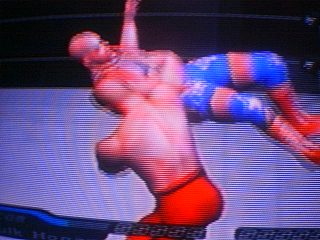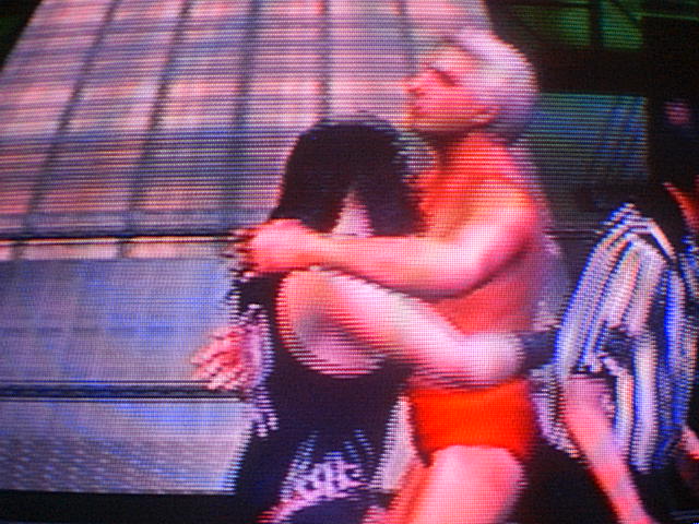 THE COMPLETELY SOLD OUT COW PALACE IS PICTURED AND LIT UP WITH FIREWORKS, SENDING THE FANS INTO A FRENZY. THOUSANDS OF FANS SCREAMED AND YELLED AS "RAISE UP" BY SALIVA BLARED THROUGH THE BUILDING. ONE SIGN WAS IMMEDIATELY CAPTURED ON CAMERA SAYING "TRIPLE H..... YOUR TIME IS UP". Jim Ross: "Pay-per-view as only the TWF can do it as we are live in the Cow Palace for Deadly Games and King, I can't remember a night that had so much action in store... this is incredible"! Jerry Lawler: "The PrimeTime guys are here too J.R. but I know the majority of these people are here to see the RAW division do it's thing"! "HELL's GAURDIAN" BY SLIPKNOT HITS AS NAILS COMES OUT TO A LOT OF HEAT, FOLLOWED BY HIS TEAM. J.R.: "On a night where Nemesis will try and take the World title away from The Undertaker, we also have some elimination action King and that's what we've got headed our way now"! Lawler: "Oh this is gonna be chaos J.R., there is so much heat coming into this one"! "DON'T PLAY WITH FIRE" BY 2 PAC HITS AND THE CROWD COMES TO THEIR FEET AS STACY KIEBLER COMES OUT IN AN EXTREMELY SHORT PAIR OF CAMOFLAUGE SHORTS WITH AUSTIN PYROMANIA. BILLY GUNN STRUTS OUT BEHIND THEM AND HE IS FOLLOWED BY JOHN HEIDENREICH AND ANIMAL WHO ARE BOTH WEARING THE TRADEMARK ROAD WARRIOR SPIKED SHOULDER PADS. J.R.: "It didn't take these fans long to nearly blow the roof off! Listen to this ovation"! Lawler: "Well J.R. they weren't sure if they were even gonna see Pyromania tonight but speaking of getting up..... Stacy got me there"! J.R.: "Well there is no question the leggy Stacy Kiebler looks magnificent tonight but with all the heat as you called it surrounding this match, it may not be the best place for her"! Lawler: "Well she plays with fire all the time hanging around Pyromania but if she wants, I'll put her fire out"! J.R.: "Okay King, let's see if we can focus on this match, shall we? Folks, keep your eye on the situation between Pyromania and Nails here! If they get in there together, all hell is gonna break loose"! Lawler: "Well hopefully Pyromania remembers what happened to him the last time he came face to face with Nails! He'd be best to stay far away from the hockey masked maniac"! Deadly Games Elimination Match Nails, Scott Steiner & La Resistance w/ William Regal vs. Austin Pyromania, Billy Gunn and the New Road Warriors w/ Stacy Kiebler As the bell sounded, Pyromania was in the ring, yelling for Nails to get in there with him but Billy talked him out of starting the match and Billy started off withh Sylvan Grenier. After a collar and elbow tie, Billy whipped him hard into the mat. Billy then hit the ropes and Grenier went down to the mat. Billy jumped over him and hit the other side but Scott Steiner kneed him in the back. Billy grabbed his lower back in pain but turned around and punched Steiner. Billy turned around and ducked a clothesline by Grenier before hitting him with 3 straight jabs and sending him to the ropes, locking in a sleeper and hitting the One and Only. Billy topped him but Rene Dupree came in to break it up. Billy tagged in Heidenreich and Grenier scurried to his corner, tagging in Dupree. Dupree was less than enthused with the tag but he took a swing at Heidenreich. Heidenreich caught his fist and twisted it before lifting him into the air and delivering a gorilla press slam. Heidenreich pulled Dupree up and whipped him to the ropes but when he put his head down, Dupree kicked him in the head and tagged in Steiner. Steiner came in and went after the massive Heidenreich with some powerful shots but they didn't seem to phase him. Heidenreich then reversed an irish whip and caught Steiner with a boot to the face before tagging an eager Billy Gunn back in. Billy was all over Steiner like a cheap suit until William Regal stuck his nose in. Referee Jim Korderas went over to get him off the apron but Billy took it into his own hands, knocking him to the floor with a right hand. But that allowed Steiner to get up and come up from behind, dropping Gunn with his deathdrop DDT and pinning him. With Gunn out, Pyromania came in and went at Steiner but Steiner reversed an irish whip and drilled him with a Steiner Line. After one of his trademark poses, he tagged in Nails who picked apart a fallen Pyromania, attacking him like a rabid dog. After using his hockey mask as a weapon. Nails pulled Pyromania up and just punched him in the gut. Nails began to just toy with Pyromania but Pyromania got his second wind and came back with a few right hands. They began to trade shots and even though Nails threw a heavier punch, Pyromania caught him with a jumping enziguri. Simultaneous tags were made, Nails to Dupree and Pyromania to Heidenreich. But after Heidenreich got in a heavy forearm, Grenier came into the ring with a chop block. Heidenreich was able to get back up and toss Grenier out of the ring but Dupree rolled him up from behind and got a 3 count to put him out. Pyromania came back in and knocked Dupree into the corner with a dropkick. Grenier slapped Dupree's arm, bringing himself into the match and he and Pyromania went toe to toe until Pyromania countered a scoop slam with a small package to put him out. Dupree came back into the ring as Steiner got in Korderas' face. Heidenreich came in to remove Big Poppa Pump which caused a big stir, allowing Nails to drop Pyromania with a loaded right hand.... loaded with his brass knucks! Pyromania's blood had stained the mat but he still fought his way to his feet, taking errant swings. Even with Stacy yelling for him to watch out, he walked right into the "Nail Gun" and was pinned. The order was extremely tall for Animal who had yet to get physically involved in the match. He came in and went shot for shot with Nails until the Hardcore Icon got in a headbutt, knocking him to the mat and smudging his face paint. Nails tagged in Steiner who came in, looking to put the finishing touches on the legendary superstar. Off an irish whip, Steiner caught him and h