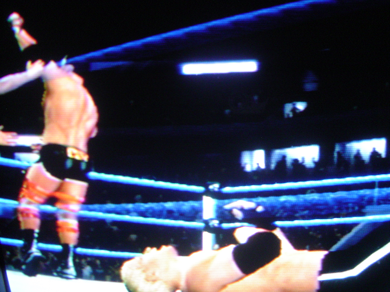 PRIMETIME STARTS WITH IT's SUPERSTAR-LADEN, BLACK AND WHITE OPENING MONTAGE BEFORE "RAP SUPERSTAR" BEGINS TO PLAY. THE ALLSTATE ARENA IS THEN SHOWN AND THE NOISE LEVEL IS VERY HIGH AS THE CAMERA PANS AROUND THE STANDS WHILE PYRO EXPLODES OFF THE PRIMETIME SET. Michael Cole: "Good evening and welcome to TWF PrimeTime from the Allstate Arena! I'm Michael Cole alongside John Bradshaw Layfield"! "METALINGUS" BY ALTER BRIDGE COMES ON AND OUT STEPS EDGE TO SOME TREMENDOUS HEAT. HE HAS THE INTERCONTINENTAL TITLE AROUND HIS WAIST. JBL: "And what better way to start this night than with the Rated R superstar"?! FINLAY's MUSIC COMES ON AND HE COMES OUT TO THE RING CARRYING HIS SHILLELAGH. HE TOO, IS LOUDLY BOOED. Cole: "Edge will team with the fighting Irishman, Finlay to face a couple guys who they seem to have some sudden problems with". THE FANS ALL COME TO THEIR FEET AS "THIS FIRE BURNS" BY KILLSWITCH ENGAGE STARTS UP AND CM PUNK STEPS OUT TO A MAJOR OVATION. JBL: "They do have sudden problems but I firmly believe that they will take care of those tonight"! Cole: "The fans are on their feet for Chicago's own, CM Punk"! "DOWN WITH THE SICKNESS" BY DISTURBED COMES ON AND HIGH OCTANE STEPS OUT TO A LOUD OVATION AS WELL. JBL: "They can cheer these two all they want, Michael, they're in there with two of the best that PrimeTime has to offer in Edge and Finlay"! Cole: "Well on the last PrimeTime, it seemed that Punk and High Octane got the best of them as Edge offered an open challenge to anyone in the back to come out and face him for an Intercontinental title shot and out comes Punk.... only to see Edge run away with his tail between his legs once Punk started to get the best of him"! JBL: "I'd like to see you say that to Edge's face, Michael, and don't even bring up what High Octane had the nerve to do to Finlay.... he's gonna pay for that tonight"! Edge and Finlay vs. CM Punk and "High Octane" Damion West The bell sounded to start the match and it was Finlay starting things off with CM Punk, two men who were no strangers to one another. They locked up and Punk surprised Finlay with a quick arm drag. This seemed to take the veteran off his game as Finlay angrily charged him but ran right into a drop toe hold. After a basement dropkick, Punk was rolling. He then hit the ropes but Edge clubbed him in the back of the head. Punk turned and threw a right hand at Edge that missed but when he turned around, Finlay nailed him with a double thrust to the throat. After putting the boots to Punk, Finlay made the tag to Edge who was now all too eager to get in there with Punk. He pulled Punk to his feet and blasted him with some stiff right hands in the corner before sending him to the other side with such velocity that Punk hit the corner and just fell face first to the mat. Edge had some disparaging words for High Octane as he made the tag back to Finlay. They then pulled Punk to his feet and whipped him to the ropes but Punk ducked a double clothesline and then took Edge out with a jumping enziguri before knocking Finlay down with a back footsweep all in the same motion, an amazing move. This allowed Punk to tag out and West came in taking on both Edge and Finlay. After a dropkick knocked the Intercontinental Champion out of the ring, High Octane hit the ropes and caught Finlay with a flying forearm. Finlay quickly got to his feet, stumbling around, but High Octane caught him with the "Head on Collision", falling into the cover but Edge came in at 2 and a half to break it up. This drew Punk into the ring and all 4 men were going at it. High Octane and Punk together took it to Edge until Finlay came from behind with a shot to the back of the head of West. He then picked Punk up for a slam but Punk slipped off and took Finlay down with a reverse DDT. Punk then saw an opening and with Edge still recovering in the corner, he flew in with a high knee right to the jaw. Punk then grabbed Edge for a bulldog, but Edge freed himself and slipped under the bottom rope. Referee Charles Robinson finally stepped in and forced Punk to his corner but as he was doing this, Edge grabbed Finlay's shillelagh and smashed High Octane over the head with it. Finlay then picked up the pieces, lifting High Octane up for the "Celtic Cross" and covering him for the win. Match Time: 8:33 JBL: "Ha ha, I told you High Octane would pay for what he did last week, Michael, that was great"! Cole: "Yeah, all it took was a shillelagh to the head, a lot to be proud of there"! FINLAY's MUSIC PLAYED AND HE AND EDGE LEFT IN VICTORY AS THE CROWD BOOED. IN THE RING, PUNK TRIED TO HELP HIGH OCTANE TO HIS FEET. JBL: "This is a shining example of why you don't mess with someone like Finlay and Edge"! Cole: "Well don't go away folks, plenty of action still ahead, including John Cena trying to regain the Universal title from Randy Orton"! COMMERCIAL BREAK....... A COMMERCIAL FOR BUD LIGHT IS SHOWN FOLLOWED BY ONE FOR CITI BANK. RETURN FROM BREAK..... BACKSTAGE AREA.... WHEN PRIMETIME RETURNS, MARIA IS SHOWN IN THE BACK WITH AXL IRVIN AND TRACI BROOKS. Maria: "Axl, tonight you face Bobby Lashley, who was able to defeat you on the last PrimeTime. Do you expect things to be different tonight"? Axl Irvin: "No, Maria, I expect to go out there and lose again. Are you serious?! Of course things will be different tonight, in fact, if Lashley beats me again tonight...... I'll quit this business"! AXL IRVIN STORMS OFF AND EVEN TRACI SEEMS CAUGHT OFF GUARD BY HIS COMMENTS. BACK AT RINGSIDE, A JAPANESE TUNE HITS AND A MAN IN A BLACK CAT-LIKE MASK TROTS OUT TO THE RING. Cole: "Surprising comments there by Axl Irvin, John". JBL: "Yeah, I'm a big fan of Axl Irvin and what he's been able to do here in the TWF, but he may've just made a big mistake". Cole: "A new superstar here in the TWF who we know little about is this guy, known only as the Black Tiger". JBL: "Well I'm interested to see what he can do because anybody who has ever followed wrestling in Japan knows tha
