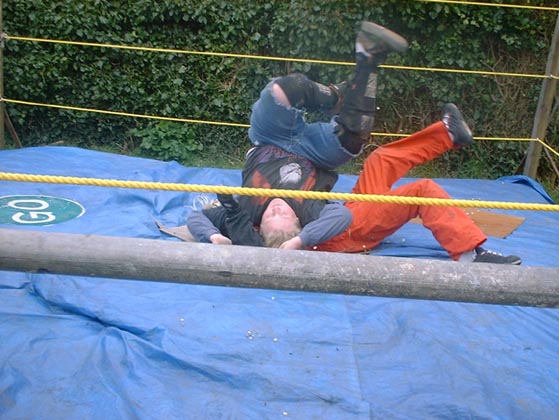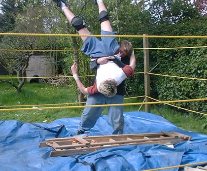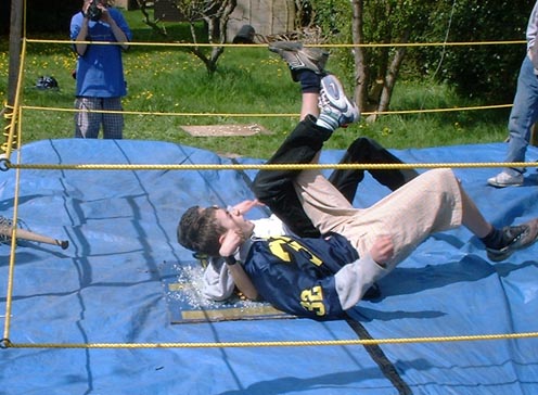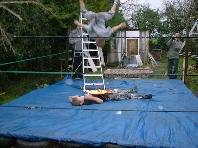 lil giant killa hits a awesome side kick from a ladder to k.a kid