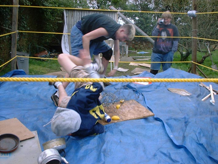 Jaxx powerbombs Snoop onto a barbed wire board with salt and lemons on