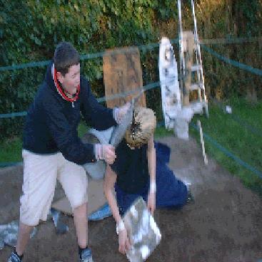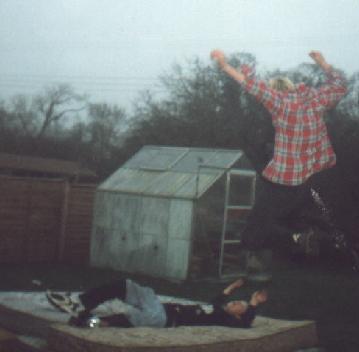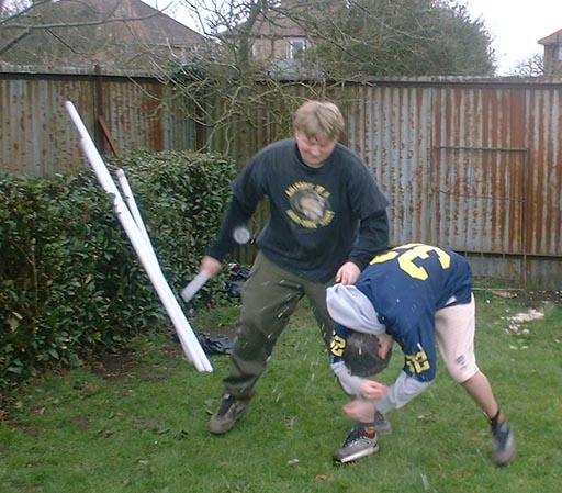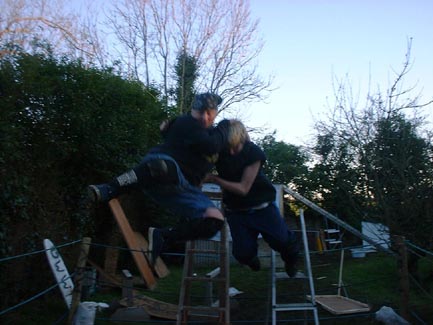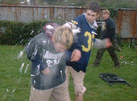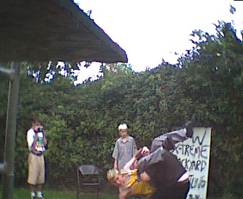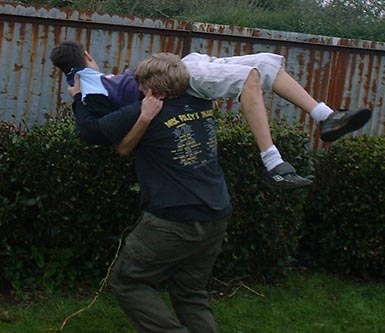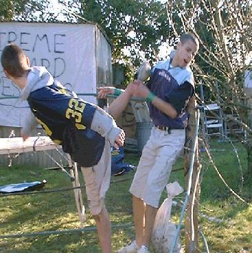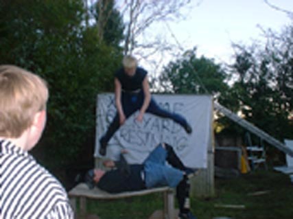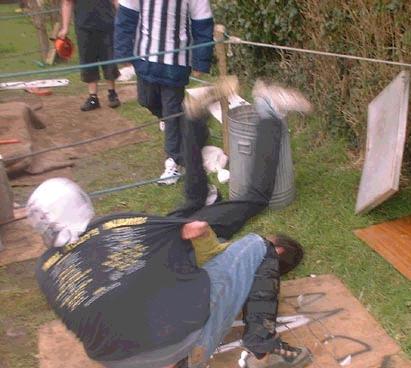 Jaxx with a hip toss on Karnage on a fn trash can-oww!