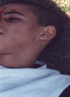 nice pic of the table of death- table with light tubes wrapped in barbedwire