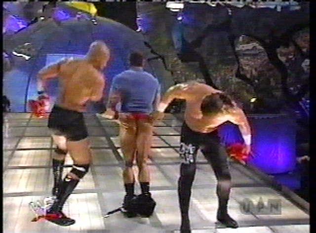 Both Chuck and Rico end up in the corner, set up for the Stinkface!