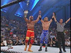 Edge and Hogan raise the titles in victory.