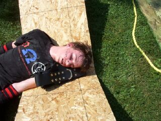 Genoside started the match out with a crazy chair shot to D-Day. The match was one of CBW's best. Any extreme match with Genoside is bound to be insane and this was exactly that. All three men were using the weapons. Syfer was bloody from a chair to the face and D-Day hit his version of the F-5 on Syfer the Genoside stacked the tables with syfer sandwithed between ladders and hit a moonsault. The move was sooooo crazy ...Syfer was out and so was Genoside. D-Day took advantage and pined Syfer while Genoside was still recovering.