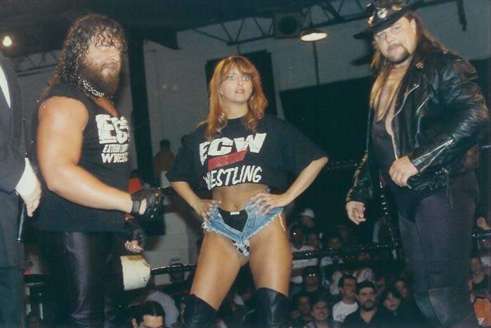Lex: I actually started my career long before ECW. I had the good fortune of meeting my man Damien back in the 80's and started working as his valet (named Destiny) in 87 with the NWF (National Wrestling Federation)......we worked together ever since and finally got married a few years later. While we were working in the NWF there was a young photographer named Paul Heyman that was doing the programs for the group......Damien was part of the office doing some of the booking and TV production and eventually they gave Paul a shot at being the commentator for their TV tapings. Eventually, Paul expressed an interest in becoming a manager, so Paul E. Dangerously started managing Damien & his partner D.C. "Mad Dog" Drake.....the rest is history as far as Paul making his mark in the business, but when Paul took over booking for what was then Eastern Championship Wrestling (ECW) for Tod Gordon (he wanted a change from Eddie Gilbert) they talked to Damien about being part of the new ECW (EXTREME) group.....of course I came along with the deal.