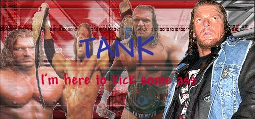 Tank:So it starts. The EWA World Title Tournament. 16 superstars entering, one making it through. And I must say, I really like my chances of getting that title after the winner is declaird. I mean I know I can hang with the big boys but can they hang with me? Or is it going to be like I run right though them. I'm read for any thing they put in front of me. I don't Care if it's a champion or a pussy I will take the out. No Matter what I will win. Now whats with This Randy ortan Guy. I men whats up with that. What he couldn't handle the WWE? What about Blade. I don't get this guy. He thinks he's all that but there is nothing but there's nothin down there but fat. Now I like the Hurricane because he is cool and I'm a freak with power. Now the hole Counter Culture is really a pain in the ass. Now I know I have just got here but for some reason I think I'm going to have a little Problem with them. But You know what I'm going to fight though it. I will take on every body and Any Body. I am ready for this fed. I'm sick of this shit I wont a match and I will get one If it's the last thing I be. So any one come on I will fight you. So this will Not be the last you see of me and you beter remeber the name Tank because I will be on the top in no time. So if there is any one that thinks they can win or has the balls to fight me then please I will be waiting and watching my TV set. So come on Boys the Party Has only begin and you are already scared. I will see you later Bitch's.