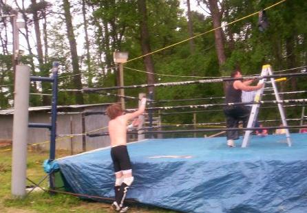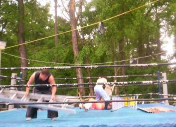 Roberts placing the Ladder on the Turnbuckle