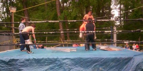 Cordova holding his back while on the Turnbuckle