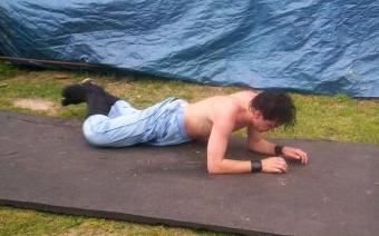 Another picture of Cordova lying on the outside of the ring