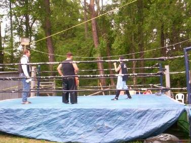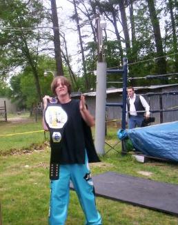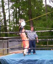 The Referee holding Roberts' hand after winning the Elite Title