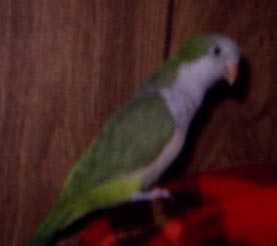 Hi all, I am Sweety. I am almost a year old female Quaker Parrott. I belong to Barb. She is my mommy. I love to give her kisses and nibble on her ear. She is good to me. Hope you enjoy my photos. I think I am a pretty bird. Oh I live in West Virginia.