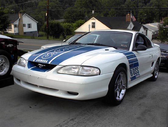 Whitney's GT has chrome Cobra R wheels and a Boss decal kit. Her beautiful white SN95 also has 3.73 gears, a Flowtech X-pipe, Flowmasters, and an attitude!! hehe