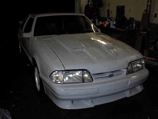 Here's the Saleen front air dam after delivery. I purchased both the wing, brake light, and the air dam from Design Concepts. The air dam is not urethane, it's fiberglass, but the fit & finish on both the wing & air dam were great. I highly recommend Design Concepts. Their prices are low & they make high quality stuff.