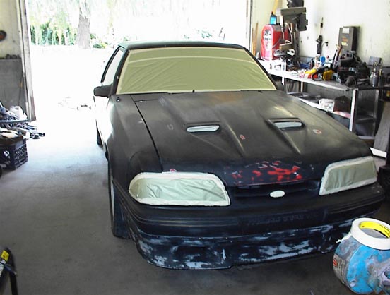 Here's the car sanded down. Also a pic taped up & ready for paint.