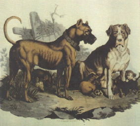 "The Mastiff" and "The Danish Dog" were drawn and published by Sydenham Edwards (1800) in Cynographia Britannica.