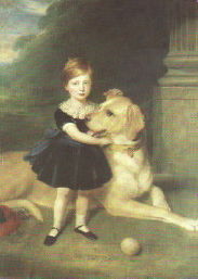 This postcard depicts the portrait of Thomas Wodehouse Legh, second Lord Newton, aged about five, with a Lyme Park mastiff.