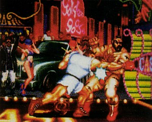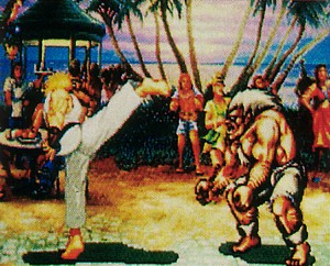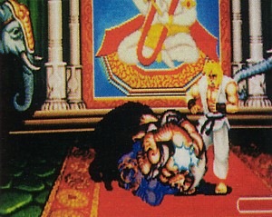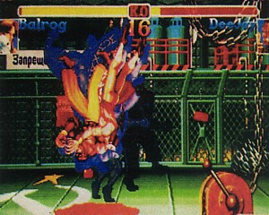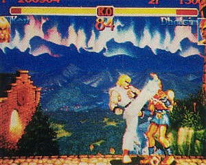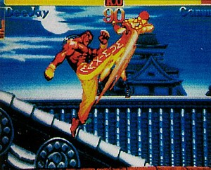 1994, Turbo comes out and it's the best of the Street Fighter II series (and the last). The first time the "Super" meter was introduced in Capcom fighting games and Akuma's first appearance. The difficulty level on the machine I had first played on was set to the max and I couldn't even get past the 2nd or sometimes the 1st fighter. The second machine, in another arcade, wasn't set as high. The colors on this one seem to be more vibrant than the one before also. All the characters could now perform "Super" moves with the addition of the Super meter, found at the lower left and right hand corner of the screen. The Super meter builds up as your character performs special moves such as Ken's Fireball or Dragon Punch. Once the meter is full, you can perform the Super move by manuevering the joystick in the same fashion as you would a regular special move, only doing the motion twice before you hit the weak, medium, or fierce button. To fight Akuma, you must defeat all the characters in the game without continuing (or losing a round?) and he will come out on Bison's stage. Cammy has a new move called, "Hooligan Roll" which is effective if timed right. Very cool intro and endings to the characters too!