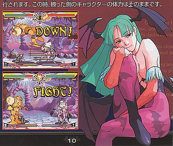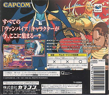 Another game that KICKS ASS! Released in 1998, Vampire Savior (also known as Darkstalkers: Jedah's Damnation and Darkstalkers 3) is quite easily the best of the Vampire series. Newer characters included (see Arcade Games) are really cool. Loading time is hardly noticable thanks to the 4MB cart. Personally, I prefer playing against a person rather than the computer. The only challenging part of the computer is playing on the hardest difficulty setting..and even that is no where near as fun as playing against a good opponent. Chain combos are still present and, as with Vampire Hunter, you can save up your "Super Meter" (1 match only) and do more damage when you can. The backgrounds are super detailed and music is very good. One of the truely f****d up background is Jedah's, lot's of imagination on that one! (I also love the blood contract). Personal background favorites are Gallon, Morrigan (duh), Zabel, and Aulbath. Each character has their own stories when you finish the game with a certain character. As with XM VS SF, don't buy the PSX version....it's slow and character animations just plain out suck. Also there is some color loss in the PSX version. Gameplay is trademark Capcom.