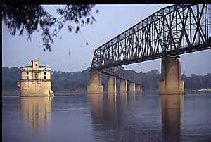 ![]() Once part of the fabled Route 66, the Old Chain of Rocks Bridge crosses one of the most historic and scenic sections of the Mississippi River. Officially opened in June 1999 as a multi-use recreational trail, the Bridge is 1-mile in length and 24 feet wide. It was named for the rocky shoals in the river just to the south. The Bridge offers a panoramic view of the St. Louis skyline and the Mississippi River, as well as, the old water-intake towers that pose as castles. It is part of the 40-mile riverside Confluence Greenway Project. Parking is available at the entrance to the Bridge on the Missouri side and along the street on the Illinois side. Hours of operation: Open daily (including holidays) from June 1, 2002 through May 31, 2003 from one-half hour before sunrise to one-half hour after sunset daily. Directions: From Missouri - (St. Louis County) Take 270 East, exit Riverview south. (St. Louis City) Take 55/70, exit Adelaide, go right to Hall Street, go left, to Riverview, entrance is at intersection of Interstate 270 and Riverview. From Illinois - Take 270 West, exit Route 3 South, then West on Old Chain of Rocks Road.