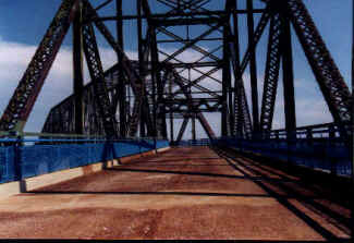 over the unusual bridge over the railroaad tracks and then angled