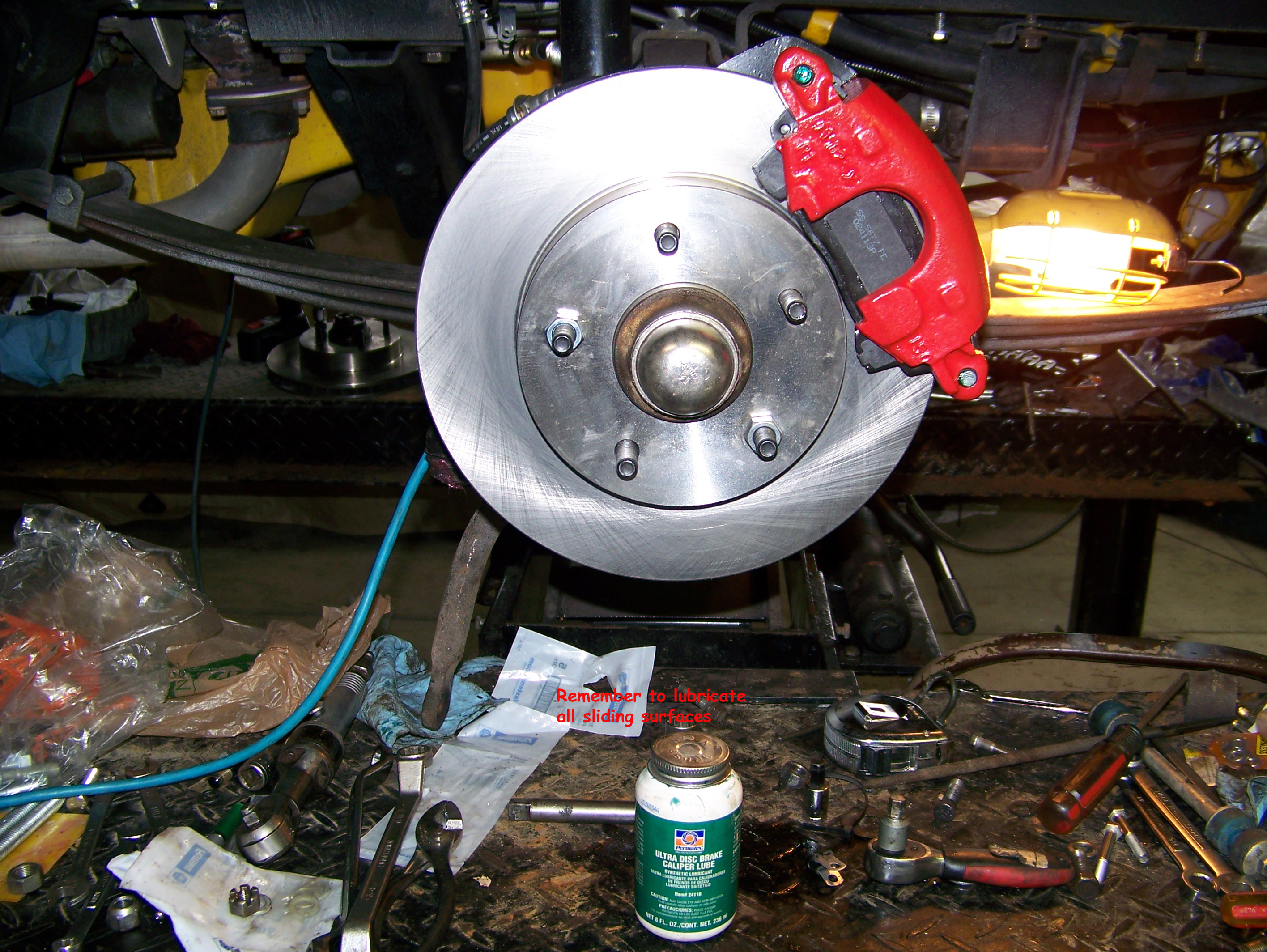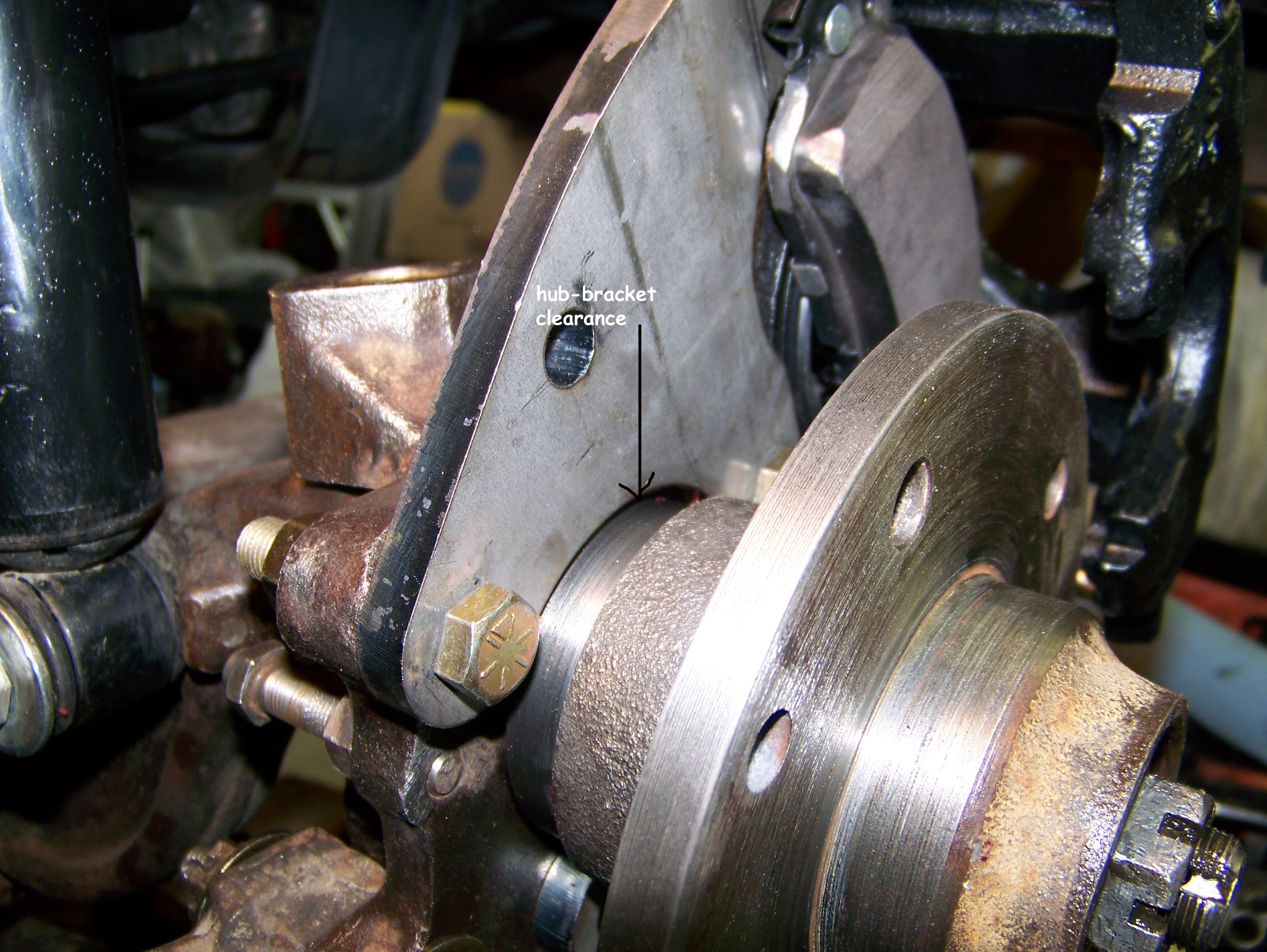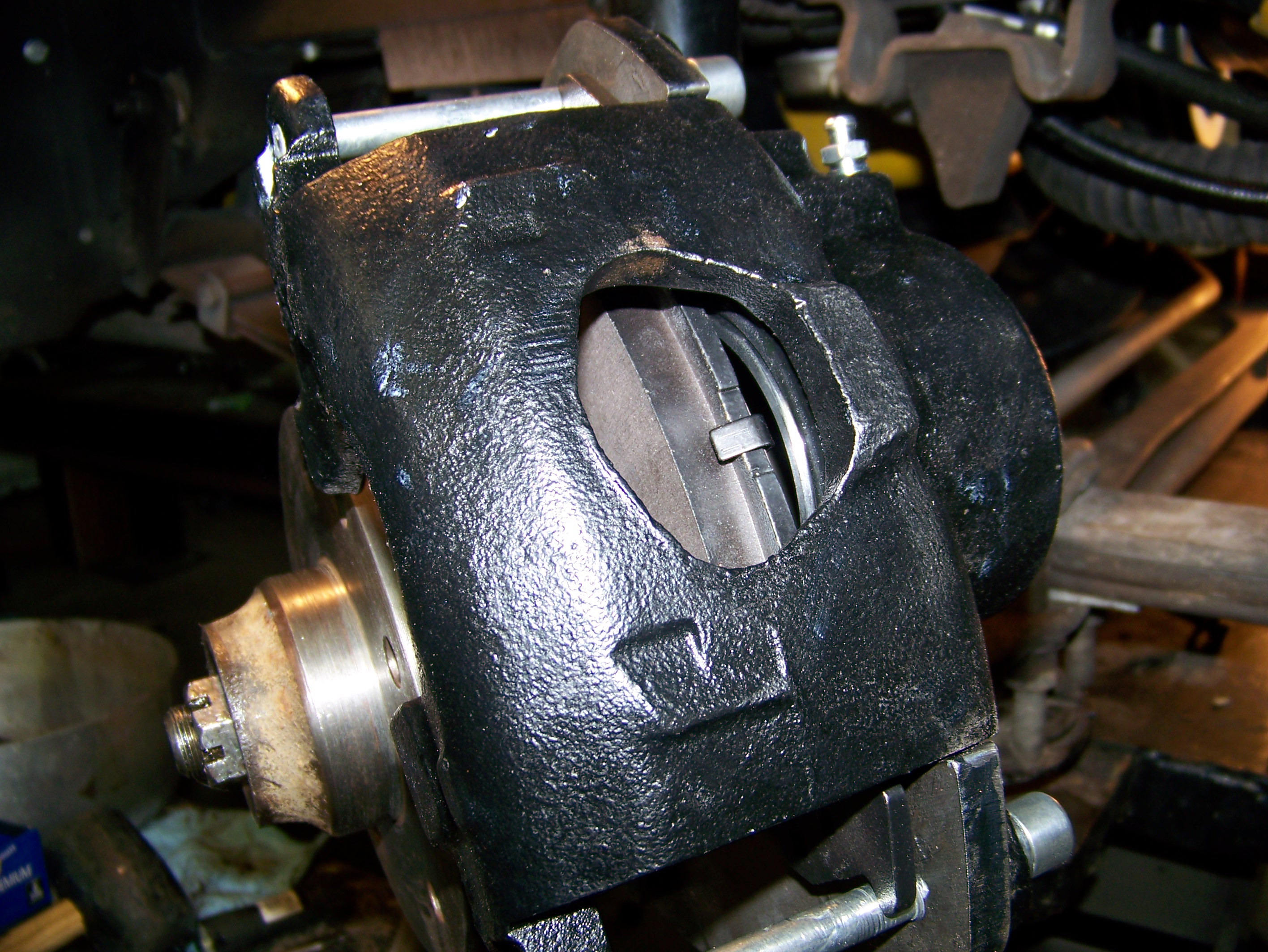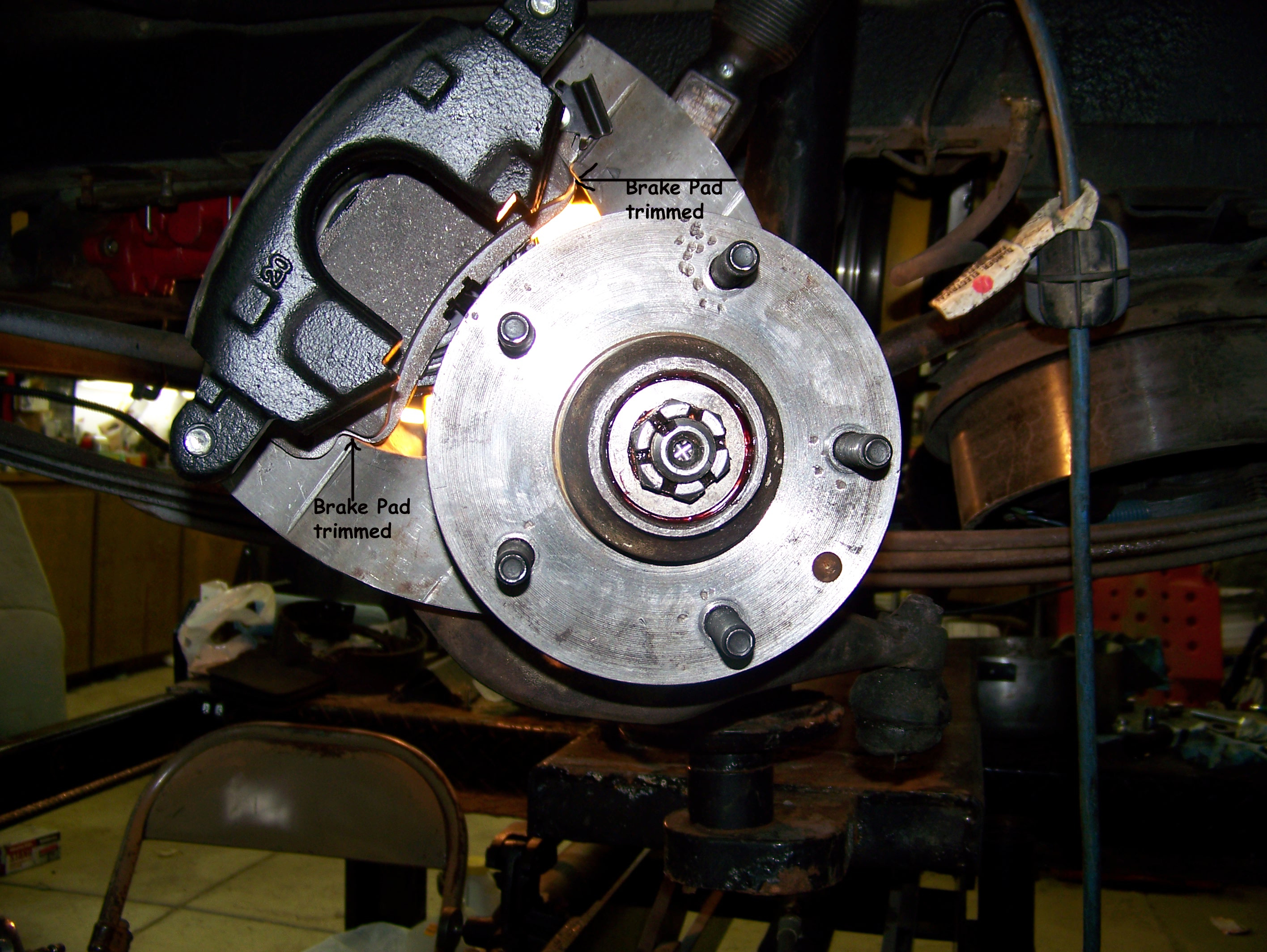 non-recommended heavy duty brake pads - pad ears ground to fit - ![]() Click to Enlarge |