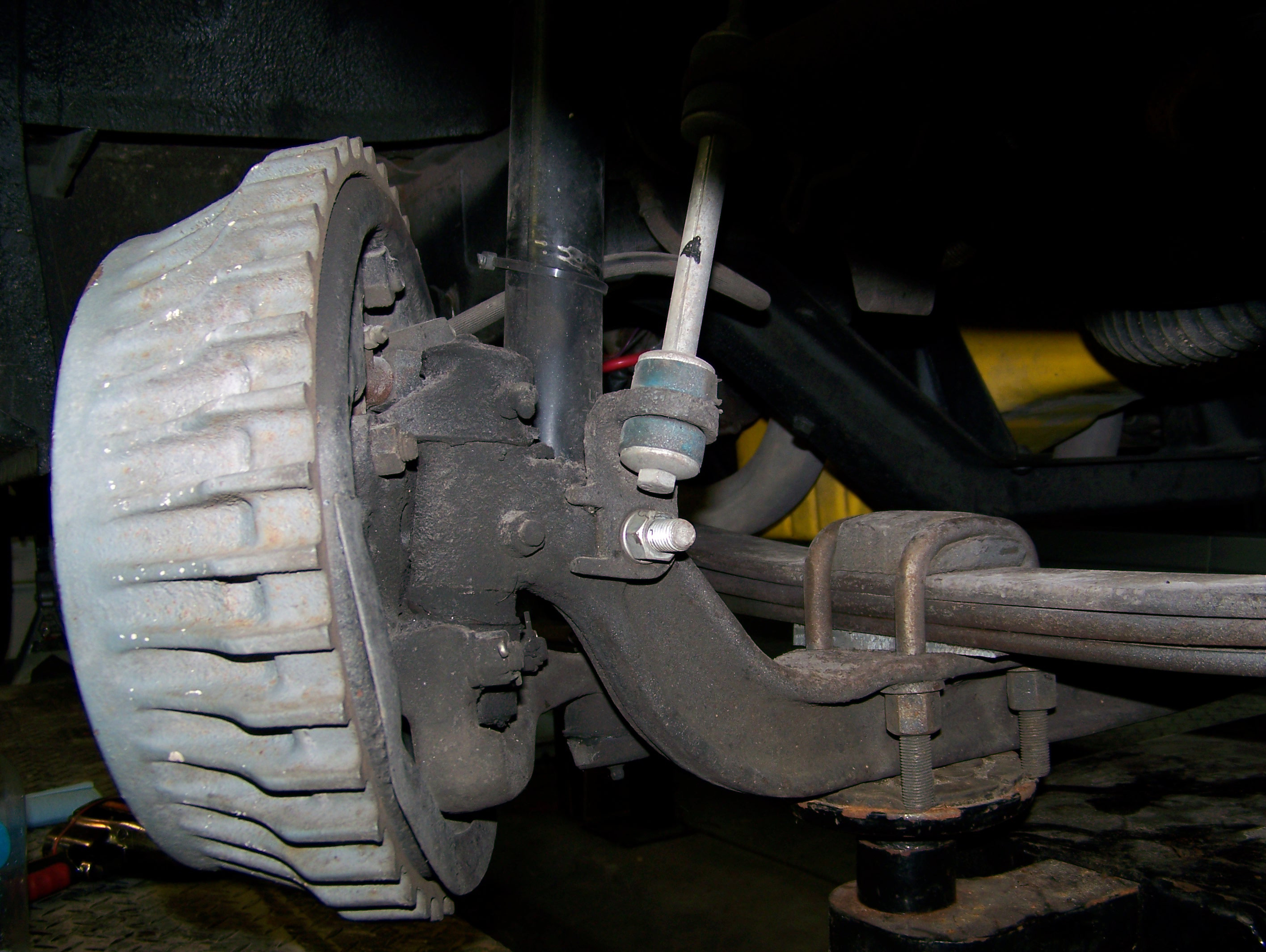 note, the Van is running after market wheels designed for vehicles with disc brakes (Camaros & Novas). 14" X 6" wheels in the front 15" X 8" wheels in the rear. Even so, portions of the front calipers needed "clearanced" |