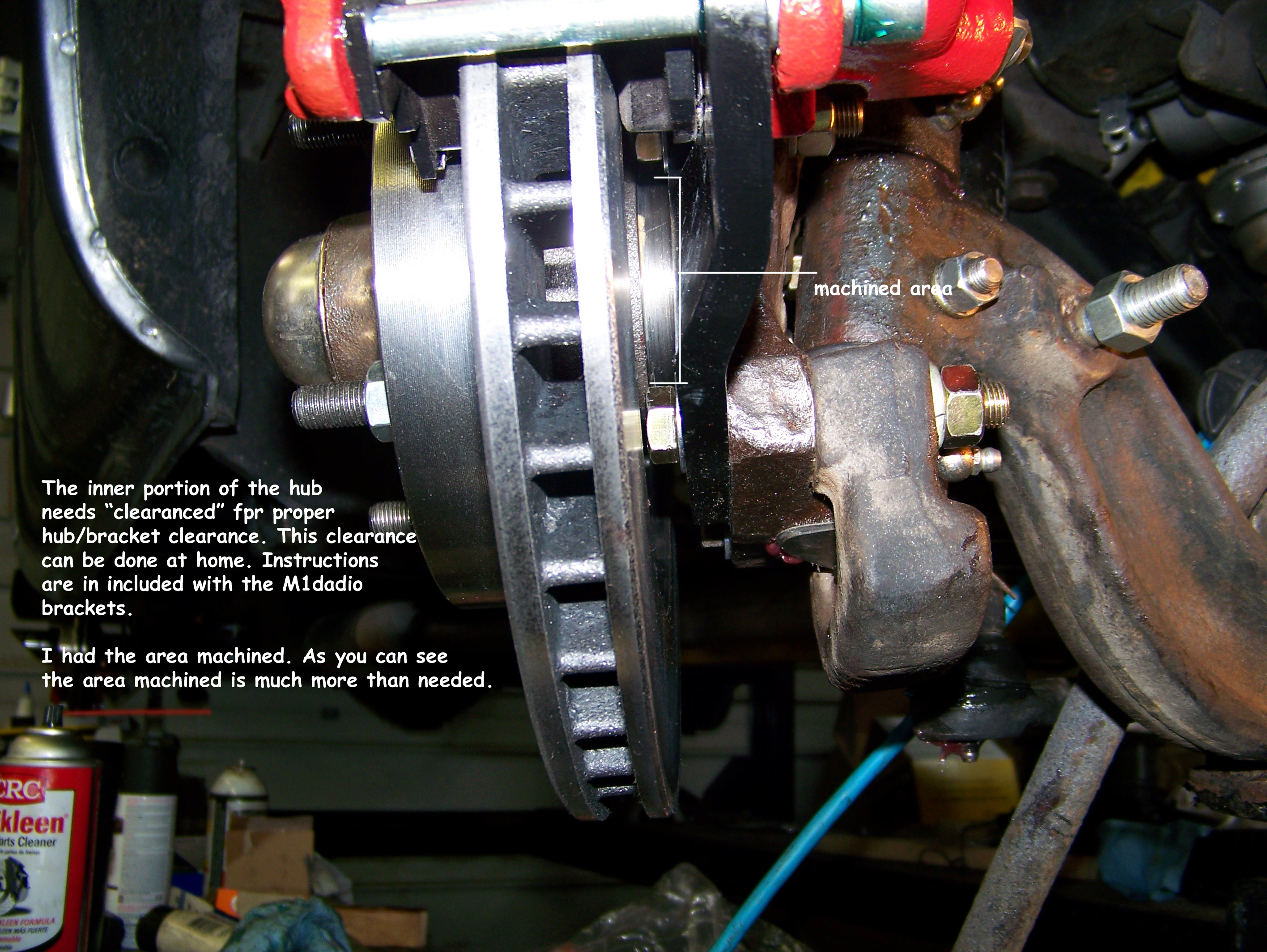 installed **Need to file/grind/machine hub ** (this is a Firebird rotor) ![]() specific instructions included with M1dadio brackets Click to Enlarge |