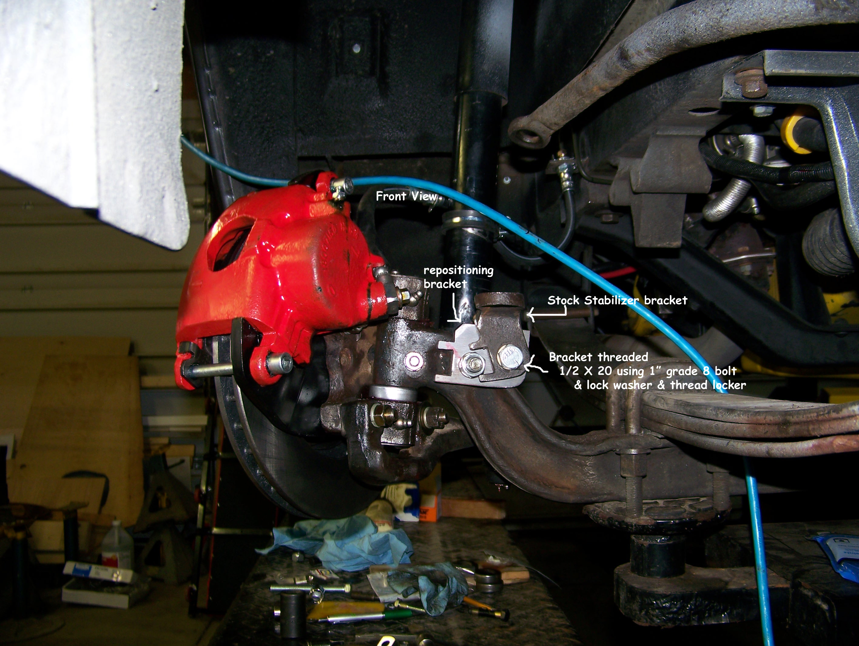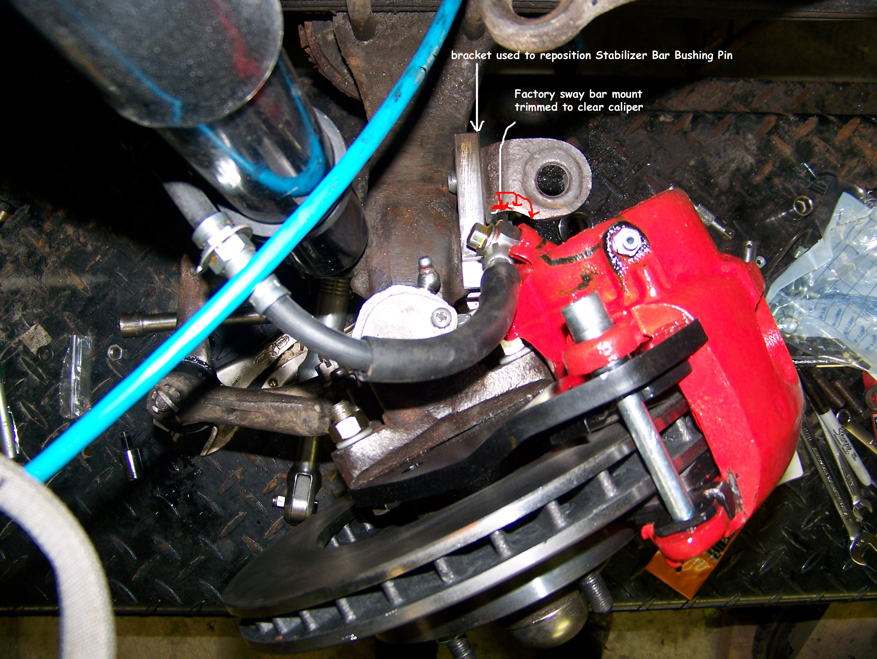 to clear the steering arm. Below is what I did to accomplish both. As has been mentioned throughout this site. all the modifications, design changes installations & removals are what worked for me. Nothing on this site or links are meant to be recommendations. Stabilizer Bar Mounting Options Options |