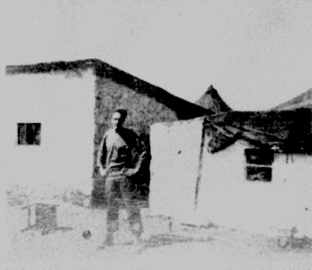 Bondarchuk's crew aquired this abode after its original crew was shot down. Sgt Harold Moynihan (tail gunner),of 1st Lt. Bert Johnson's crew. |