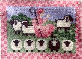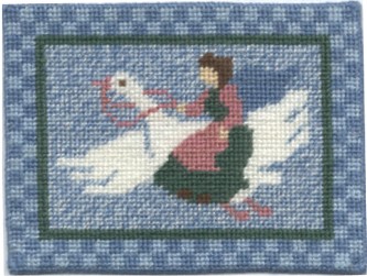 This little rug is a partner to the pink rug. They are both from designs by Suzanne McNeill for Kept in Stitches. Both rugs measure approx. 3-1/2" x 2-1/2". They are stitched on 22 count canvas using three strands of DMC floss. The price is $35.00 for either rug - you can special order the pink if you would like to have that one.